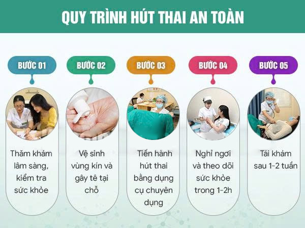 Bạn sẽ được uống thuốc giảm đau. Đặt thuốc làm mềm cổ tử cung và gây tê ở cổ tử cung. Sau khi đã đặt ống đúng vị trí, bác sĩ sẽ tiến hành hút thai ra ngoài. Cả quá trình hút kéo dài khoảng 15 – 20 phút.