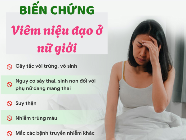 Đây là vấn đề được rất nhiều chị em quan tâm. Trên thực tế, nếu viêm niệu đạo dạng cấp tính được trị liệu sớm thì sẽ không quá lo ngại. Tuy nhiên, nếu để bệnh lâu ngày sẽ biến chứng thành nhiều bệnh khác do niệu đạo nằm gần các cơ quan: hậu môn, âm đạo, buồng trứng… do vi khuẩn di chuyển sang các cơ quan này.